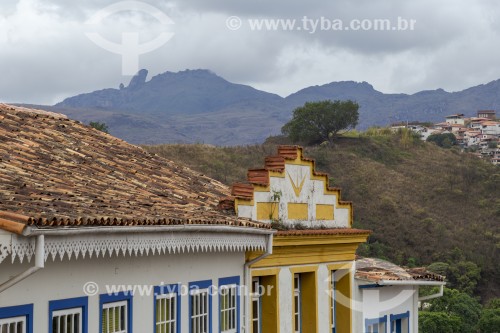 Facade of colonial houses with Itacolomi Paek in the background - Ouro Preto city - Minas Gerais state (MG) - Brazil