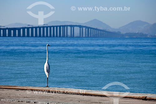 Subject: Egret on the side of Guanabara Bay with Rio-Niteroi Bridge in the background / Place: Rio de Janeiro city - Rio de Janeiro state - Brazil / Date: 06/2010