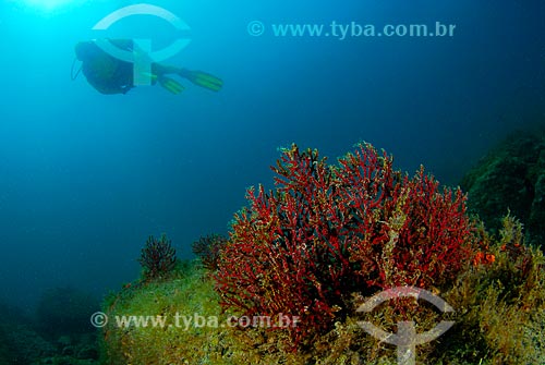 Subject: Corals and diver in Angra dos Reis city, Rio de Janeiro state, Brazil / Place: Ilha Grande Bay - Angra dos Reis - Rio de Janeiro state (RJ) - Brazil / Date: 04/06/2010