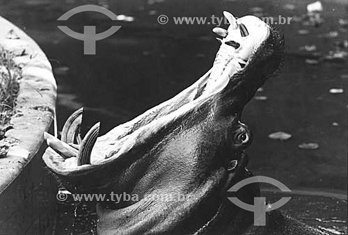 •  Hippopotamus with mouth wide open