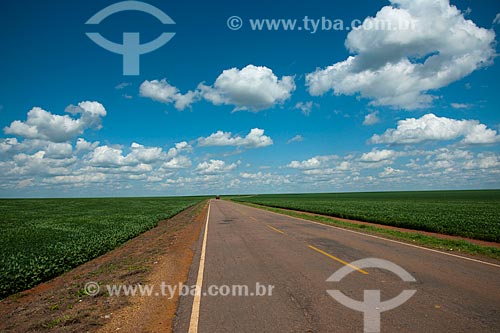 •  Subject: View of State Highway MT-299 between soybeans planting / Place: Rondonopolis city - Mato Grosso state (MT) - Brazil / Date: 12/2011