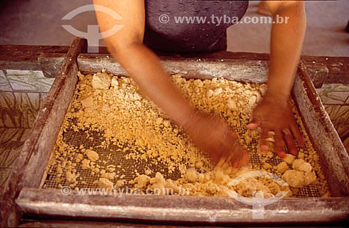 •  Manual processing of manioc flour - detail of the hands of the woman - near the city if Barreirinhas (small village in Maranhao) - Brazil
