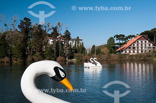 Subject: View of Paddleboats shaped like swans in Park Black Lake / Place: Gramado city - Rio Grande do Sul state (RS) - Brazil / Date: 07/2011