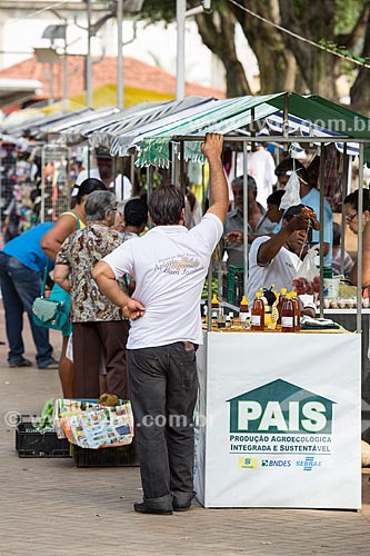 Booth fair with products of the PAIS project - Integrated and Sustainable Agroecological Production - street fair in Rodrigues Paes Square - Paraiba do Sul city - Rio de Janeiro state (RJ) - Brazil