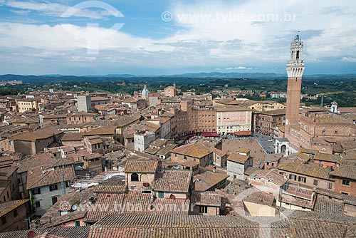 •  General view of Piazza del Campo (Del Campo Square) with the Palazzo Pubblico (Public Palace) - 1310 - headquarters of Siena city hall - to the right  - Siena - Siena province - Italy