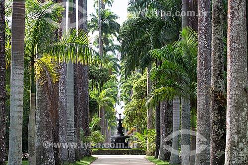 Imperial palms - Botanical Garden of Rio de Janeiro - with fountain of the Muses in the background - Rio de Janeiro city - Rio de Janeiro state (RJ) - Brazil