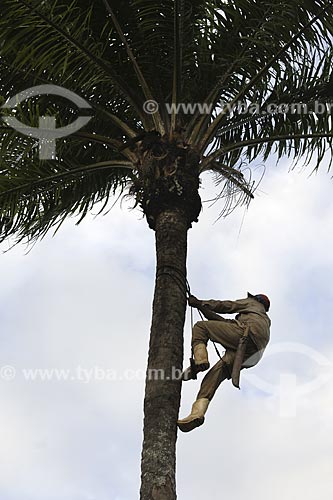Subject: Man climbing on an Oil Palm (Elaeis Guineensis) / Place: - Bahia state - Brazil / Date: 07/17/2008