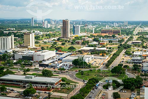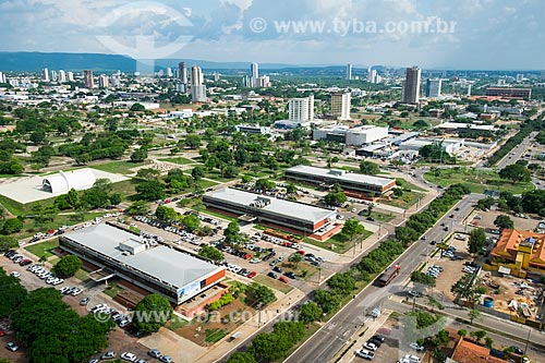 Aerial photo of the Palmas city with the Luis Carlos Prestes Memorial (1996) - to the left - the Department of Education and Culture, Health and Public Security and the Palmas Shopping in the background - Palmas city - Tocantins state (TO) - Brazil