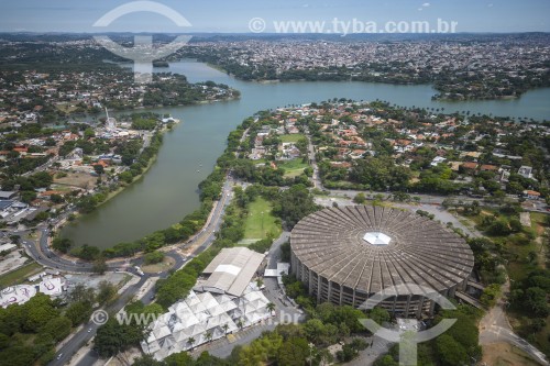 Picture taken with drone of the multi-sport gym Estadio Jornalista Felippe Drummond, known as Mineirinho, with Pampulha Lagoon in the background - Belo Horizonte city - Minas Gerais state (MG) - Brazil