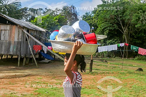 Young riverside carrying pans - Anama Sustainable Development Reserve - Barcelos city - Amazonas state (AM) - Brazil