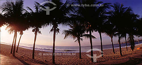 •  Copacabana Beach at dawn with Coconut palms in the foreground - Rio de Janeiro city - Rio de Janeiro state - Brazil