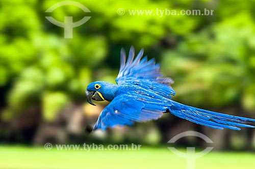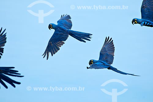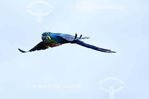 •  Subject: Wild Hyacinth Macaw (Anodorhynchus hyacinthinus) flying / Place: Corumba city - Mato Grosso do Sul state (MS) - Brazil / Date: 10/2010