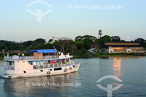 •  Boat - Tapajos River with the Fordlandia in the background - village planned to shelter the production area of rubber to Company Ford of Brazil  - Aveiro city - Para state (PA) - Brazil
