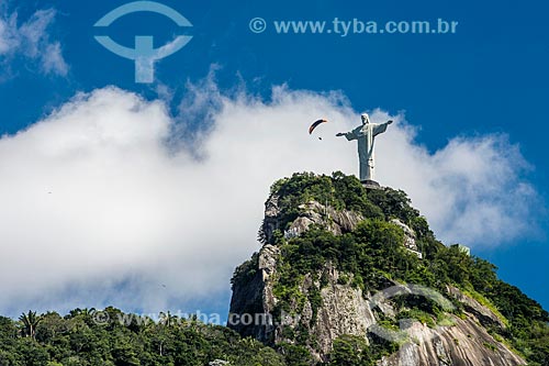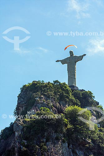 Paraglider with Christ the Redeemer viewed from Laranjeiras neighborhood - Rio de Janeiro city - Rio de Janeiro state (RJ) - Brazil