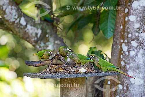 •  Maroon-bellied parakeet (Pyrrhura frontalis) bunch - also known as reddish-bellied parakeet, maroon-bellied conure, reddish-bellied conure or brown-eared conure - Guapiacu Ecological Reserve  - Cachoeiras de Macacu city - Rio de Janeiro state (RJ) - Brazil