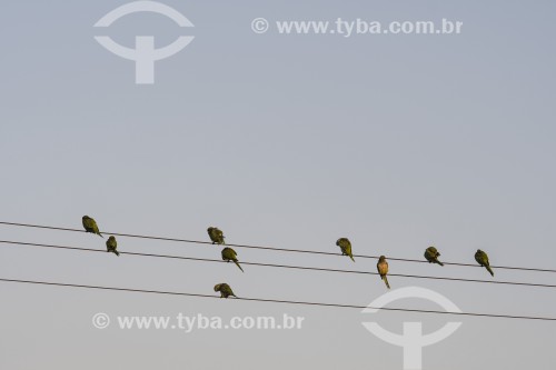 Monk Parakeet (Myiopsitta monachus) perched on power lines - Xangri-la city - Rio Grande do Sul state (RS) - Brazil