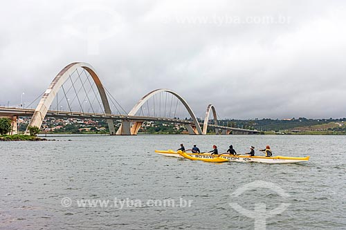 •  Practitioner of canoeing - Paranoa Lake with the Juscelino Kubitschek Bridge (2002) in the background  - Brasilia city - Distrito Federal (Federal District) (DF) - Brazil