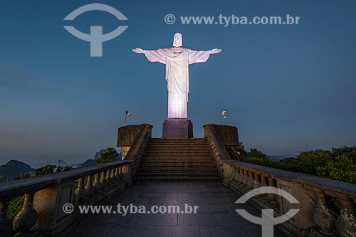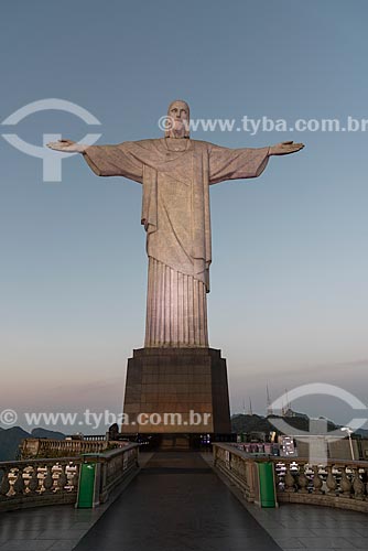 Detail of statue of Christ the Redeemer during the dawn - Rio de Janeiro city - Rio de Janeiro state (RJ) - Brazil
