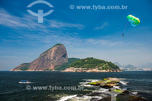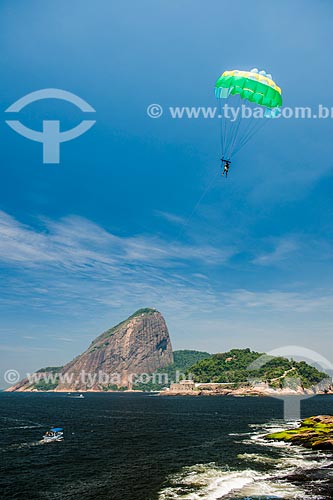 Parasailing in Guanabara Bay with Sugar Loaf in the background - Rio de Janeiro city - Rio de Janeiro state (RJ) - Brazil