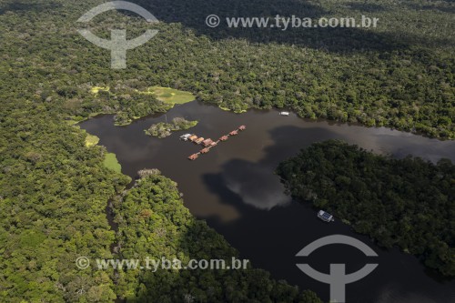 Picture taken with drone of the Uakari Lodge Floating Inn- Mamiraua Sustainable Development Reserve - Alvaraes city - Amazonas state (AM) - Brazil