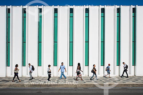 Pedestrians - Presidente Vargas Avenue with the Parque Estadual Library in the background - Rio de Janeiro city - Rio de Janeiro state (RJ) - Brazil