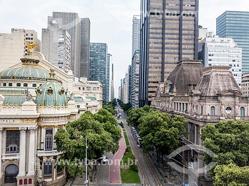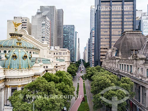 •  Picture taken with drone of the Passeio Publico of Rio Branco Avenue with the Municipal Theater of Rio de Janeiro (1909) - to the left - and the National Museum of Fine Arts (1938) - to the right  - Rio de Janeiro city - Rio de Janeiro state (RJ) - Brazil