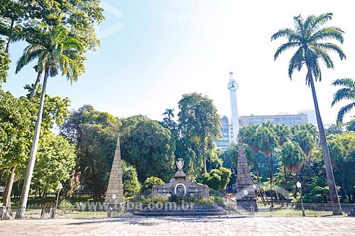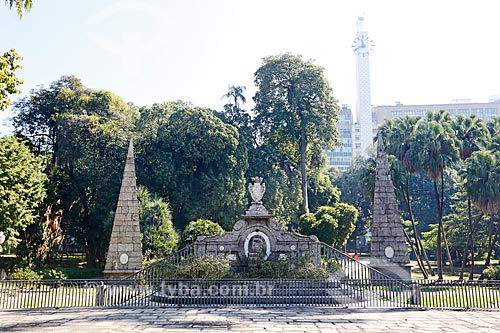 •  View of Love Fountain - Passeio Publico of Rio de Janeiro (1783) - with clock of Passeio Building (1934) - old Mesbla Building - in the background  - Rio de Janeiro city - Rio de Janeiro state (RJ) - Brazil