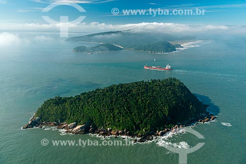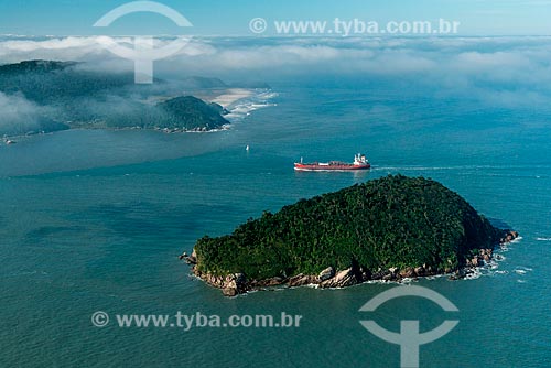 Ship passing between Galheta island and Mel Island - channel da Galheta - Paranagua city - Parana state (PR) - Brazil