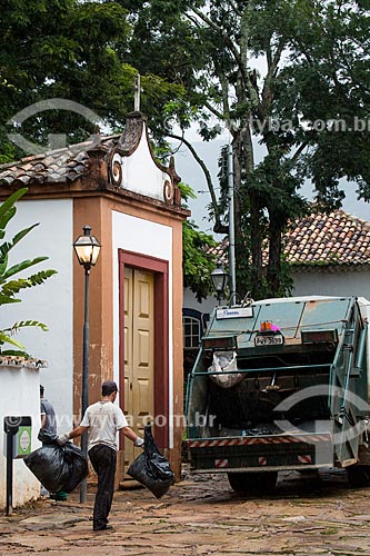 Garbage collection opposite to Passos da Paixao Chapel (1740) - Tiradentes city - Minas Gerais state (MG) - Brazil
