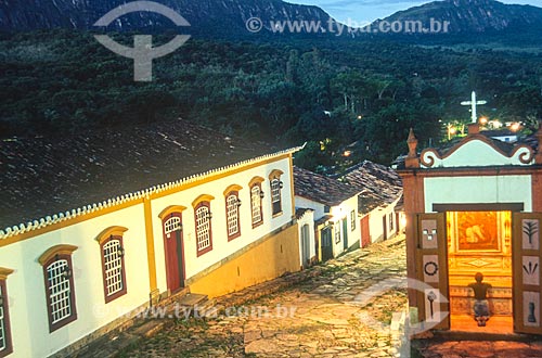 •  View of the Passos da Paixao Chapel (1740) - Largo da Camara Square with the Sao Jose Mountain Range in the background  - Tiradentes city - Minas Gerais state (MG) - Brazil