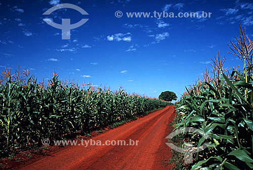 •  Dirt road cutting through a corn field - Ibipora village - Minas Gerais state - Brazil