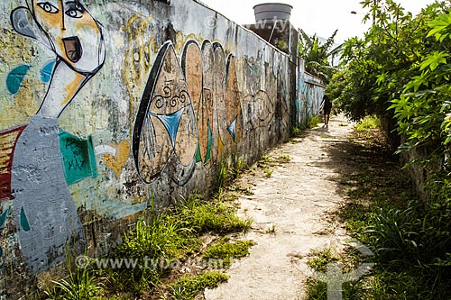 Graffitied wall - Pathway to Acores Beach - Florianopolis city - Santa Catarina state (SC) - Brazil