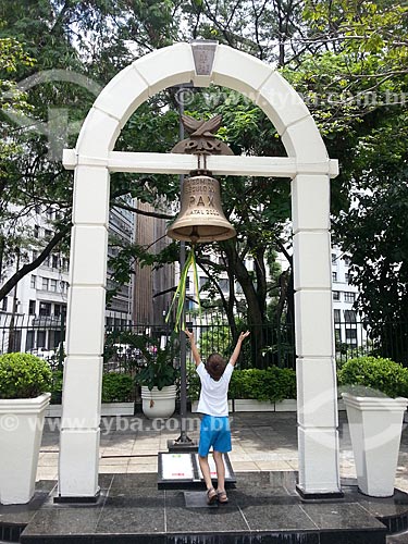 •  Subject: Woman ringing the bell the Peace Mark in Patio do Colegio (Courtyard of the College) / Place: Se neighborhood - Sao Paulo city - Sao Paulo state (SP) - Brazil / Date: 12/2012
