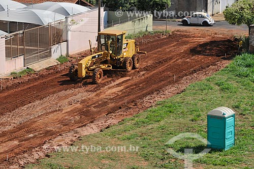 Grader working on street that will be paved - Sao Jose do Rio Preto city - Sao Paulo state (SP) - Brazil