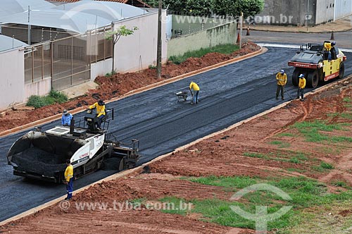 •  Vibro Asphalt finisher on a paved street  - Sao Jose do Rio Preto city - Sao Paulo state (SP) - Brazil