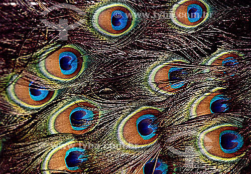 (Pavo Cristatus) - Blue Peafowl or Indian Peafowl or Common Peafowl - detail of the exuberant plumage - Brazil