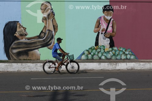 • Street with wall painted with regional themes in the city of Parintins - Parintins city - Amazonas state (AM) - Brazil
