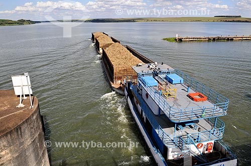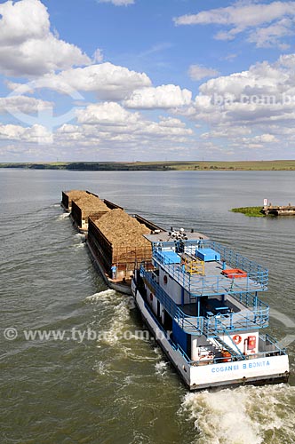 Barge carrying sugarcane - Tiete-Parana Waterway - Pederneiras city - Sao Paulo state (SP) - Brazil