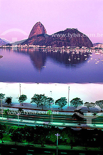 The Sugar Loaf Mountain* as seen from Botafogo Beach at twilight - Rio de Janeiro city - Rio de Janeiro state - Brazil *Commonly called Sugar Loaf Mountain, the entire rock formation also includes Urca Mountain and Sugar Loaf itself (the taller of
