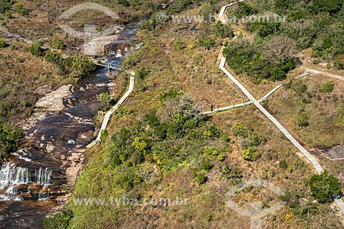 •  Aerial photo of the Lajeado de Pedra River and trail - Guartela State Park  - Tibagi city - Parana state (PR) - Brazil