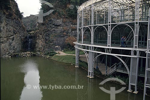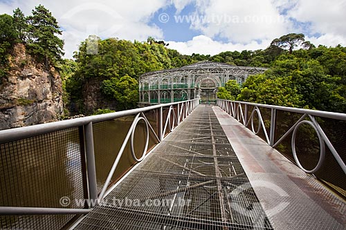 Subject: Footbridge with the Opera de Arame in the background - using pipes as structure and is perfectly integrated to the surrounding nature / Place: Curitiba city - Parana state (PR) - Brazil / Date: 12/2013