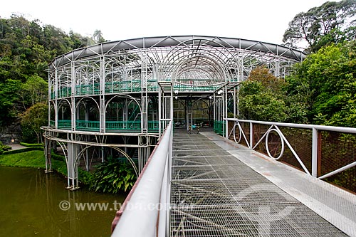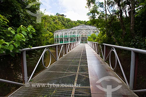 •  Subject: Footbridge with the Opera de Arame in the background - using pipes as structure and is perfectly integrated to the surrounding nature / Place: Curitiba city - Parana state (PR) - Brazil / Date: 12/2013