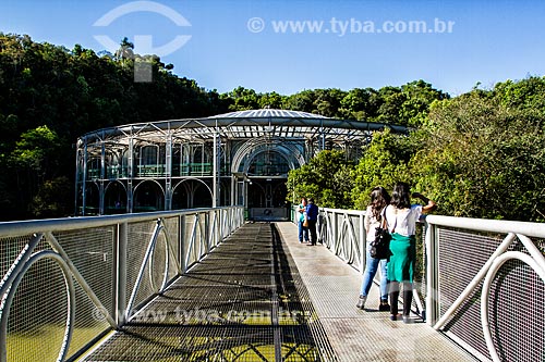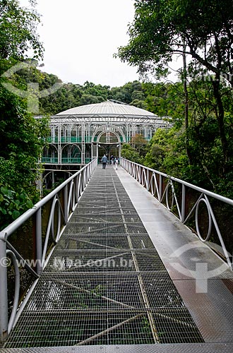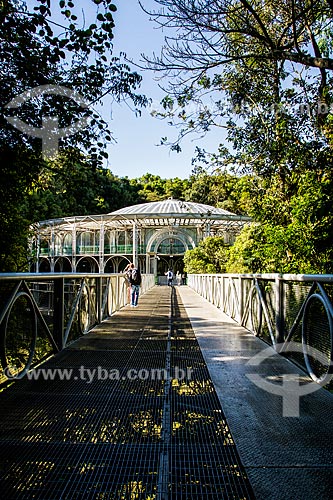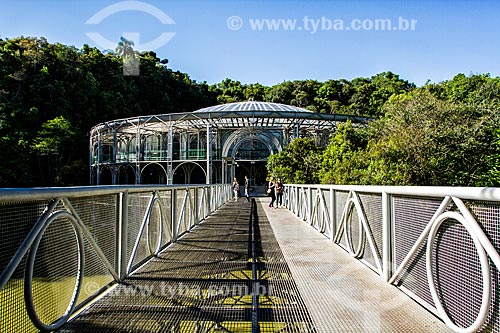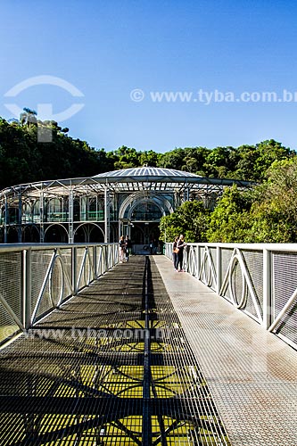 Footbridge with the Opera de Arame in the background - using pipes as structure and is perfectly integrated to the surrounding nature - Curitiba city - Parana state (PR) - Brazil