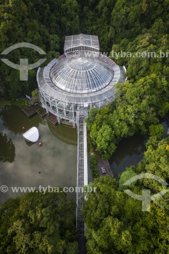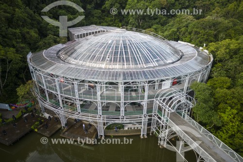 • Picture taken with drone of the Opera de Arame  - using pipes as structure and is perfectly integrated to the surrounding nature  - Curitiba city - Parana state (PR) - Brazil