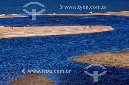 Barra do Caí (Bar of Caí)*, where Pedro Alvares Cabral ordered Nicholas Coelho to go in a canoe for the first meeting between the Portuguese and the native Indian in the afternoon of 23 of April of 1500 - Southern coast of Bahia State - Brazil * Th