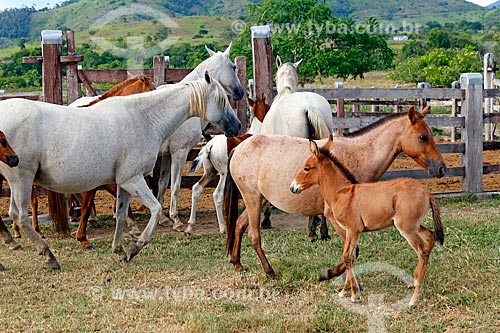 Pega Donkeys and broodmares in the pasture - Ipiranga Horse Farm - Itororo city - Bahia state (BA) - Brazil