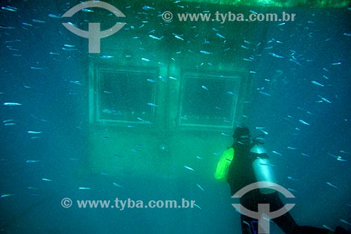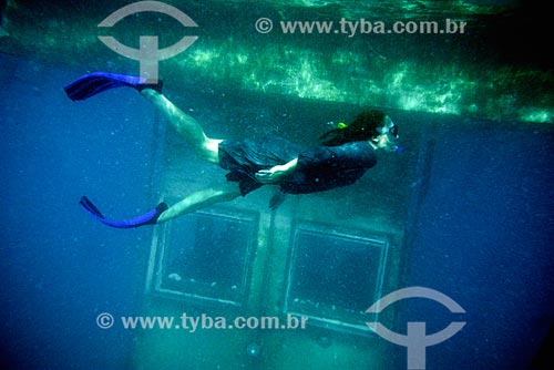 •  Diver with the underwater housing of the Manta Resort Hotel - Pemba Island - in the background  - Pemba Island - Tanzania