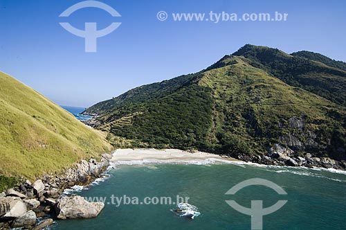•  Subject: View of Perigoso Beach (Dangerous Beach) with the Meio Beach (Middle Beach) in the backgound from Rock of Tartaruga (Rock of Turtles) / Place: Grumari neighborhood - Rio de Janeiro city (RJ) - Rio de Janeiro state (RJ) - Brazil / Date: 08/2