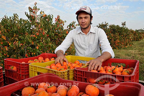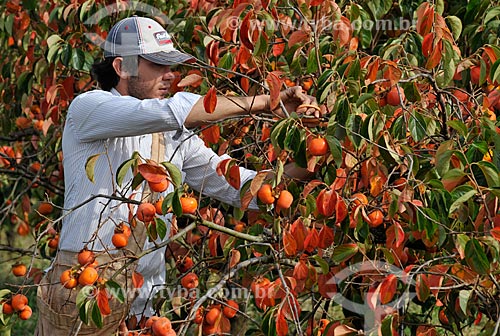 •  Farm worker picking persimmons - Rama Forte  - Jales city - Sao Paulo state (SP) - Brazil