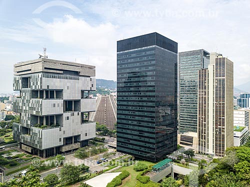 •  Picture taken with drone of the build of the PETROBRAS headquarters - to the left - with the Build of the National Bank for Economic and Social Development (BNDES) headquarters - to the right  - Rio de Janeiro city - Rio de Janeiro state (RJ) - Brazil